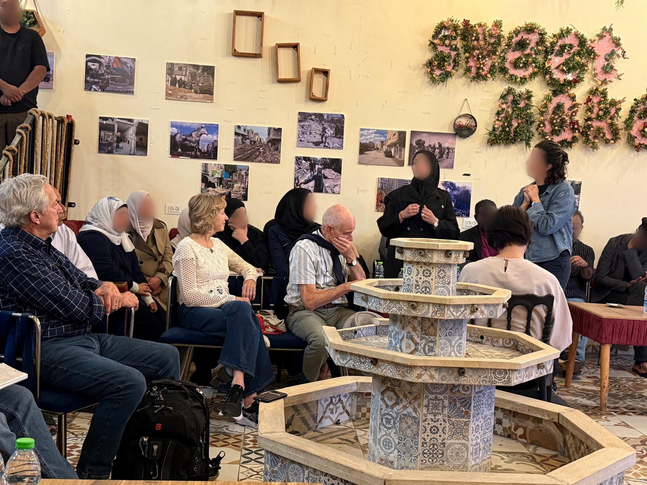 November 11, 2025 – Visitors hear a report by refugees from Jenin Refugee Camp, a West Bank community that has been under assault by the Israeli military. (Refugees' identities are protected for their security.)