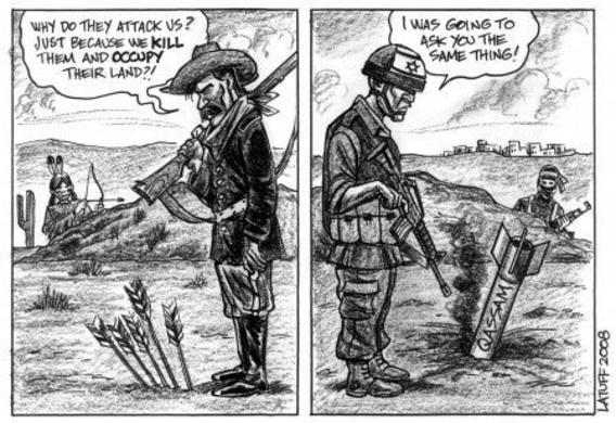 The Native Peoples were placed on reservations in their own lands and this is also happening to Palestinians.  They are prisoners in their own land.