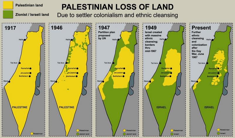 The taking of land for the use by others is called “Manifest Destiny.”   If you look at a map of the U.S. and a map of Palestine, both have been slowly inhabited by another group of people, mostly by force.