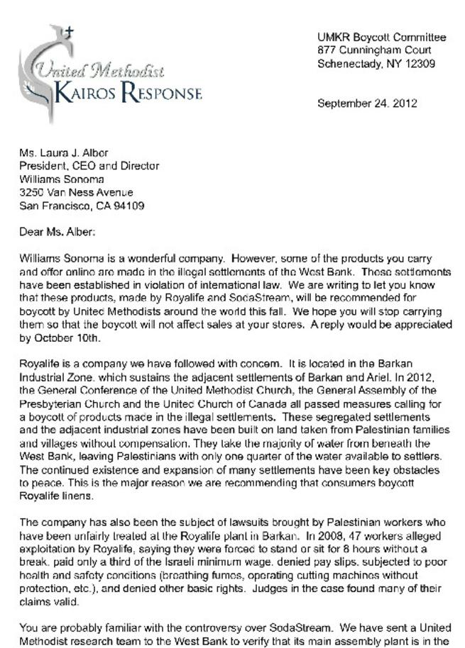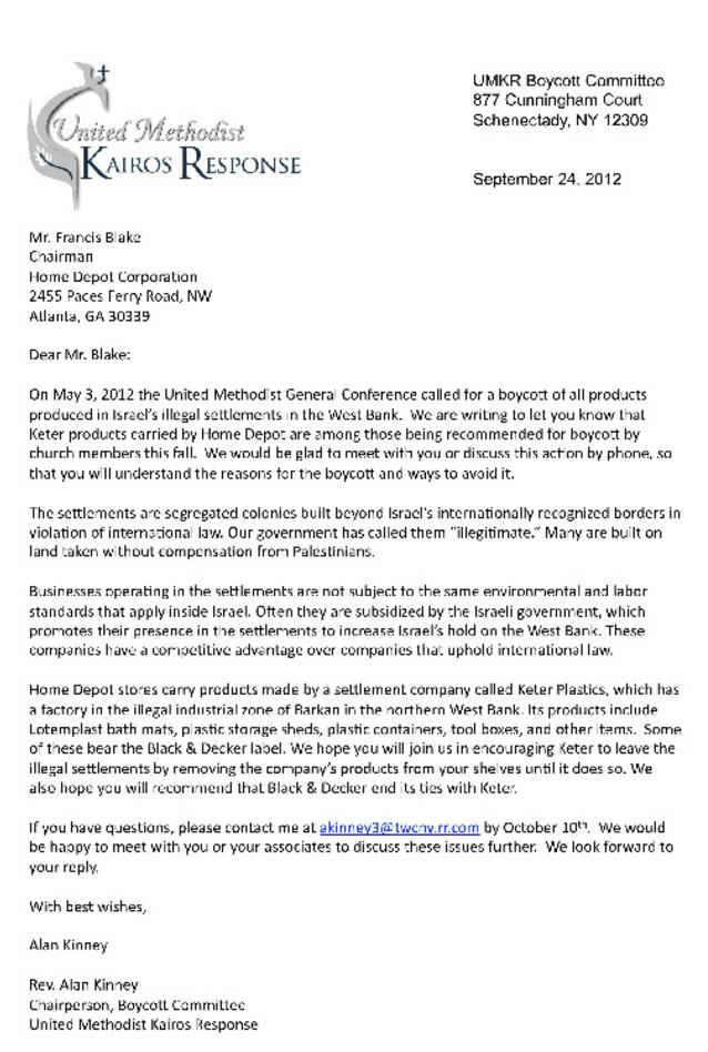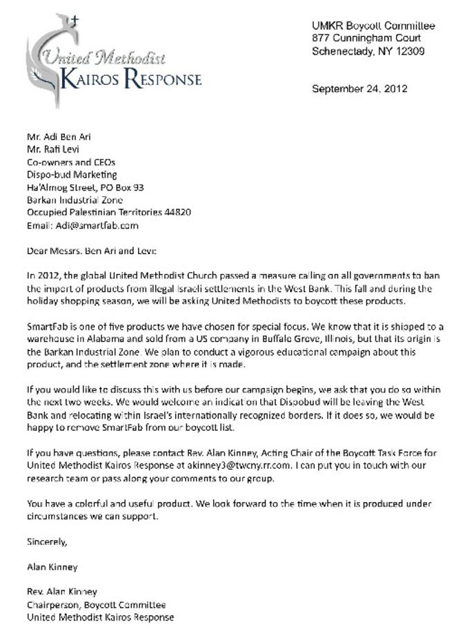 Dec. 2016 – Please note that these letters refer to UMKR by our former name. Our current name is: United Methodists for Kairos Response.